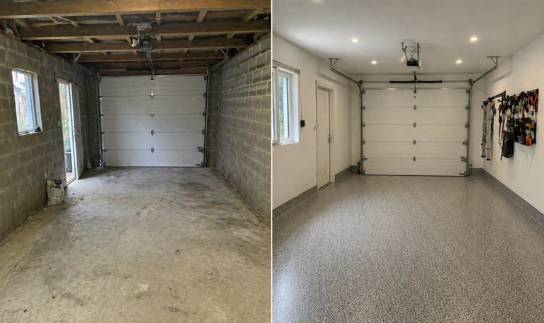 Rénovation et optimisation d’un garage avec reprise des surfaces pour un espace propre, fonctionnel et mieux organisé.